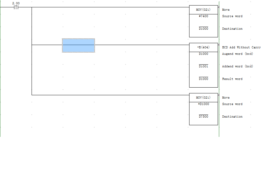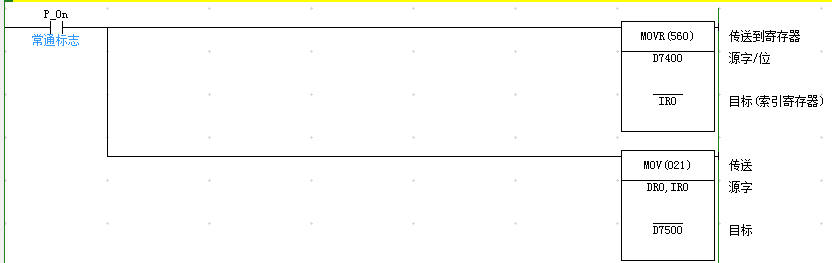 這個是把D7400 D7401 D7402三個連續(xù)的通道的數(shù)據(jù)傳送到D7500 D7501 D7502的吧,我需要的是:比如說V0是2的話,這個指令就把D7402的數(shù)據(jù)傳送到D7500,前邊D7400V0執(zhí)行的實際是D7402 也就是MOV D7400V0 D7500=MOV D7402 D7500的