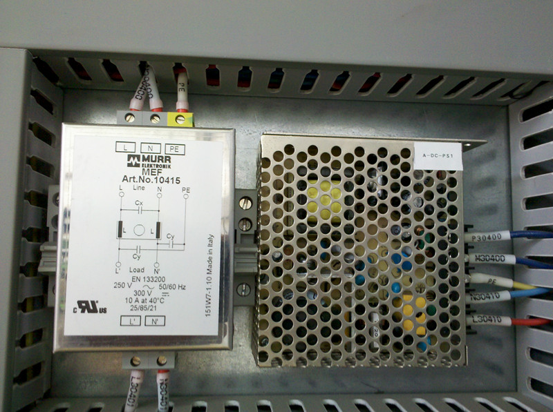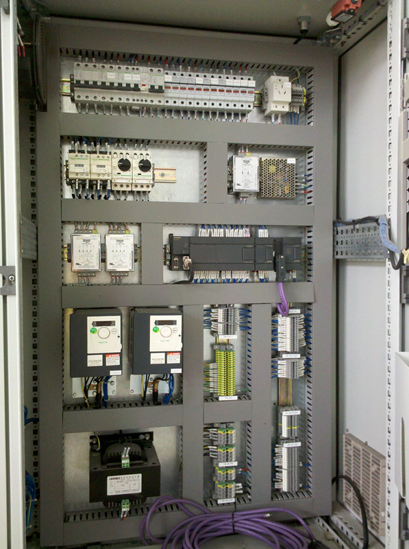 柜子挺好看的呀,就是不知道你下面那個像變壓器的是干什么的,要用這么大的變壓器,還是電抗器?變頻器上面那兩小的看不清楚,難道也是開關(guān)電源?不是吧。三進三出,難道是保護變頻的?