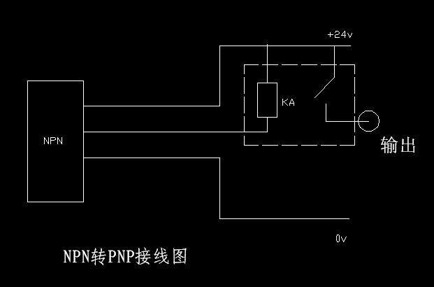 如果是PNP轉(zhuǎn)NPN,把圖中繼電器線圈一端接傳感器的輸出信號線,另一端接0V,再從0V引出一根線經(jīng)過繼電器的常開點接到PLC的輸入端。這樣就完成了PNP轉(zhuǎn)NPN。