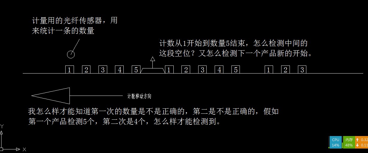 光就你給出的圖片說明,如果這個(gè)傳送帶速度比較恒定,則可以采用你自己的那套思路。就是采用檢測開關(guān)的下降沿開始計(jì)時(shí),當(dāng)時(shí)間大于一定值則判斷為檢測結(jié)束。