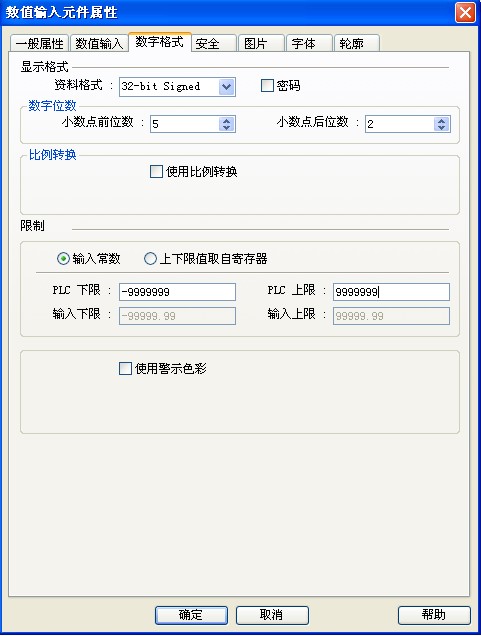 觸摸屏數(shù)據(jù)類型選擇有符號(hào)數(shù),并注意正確的設(shè)定上下限