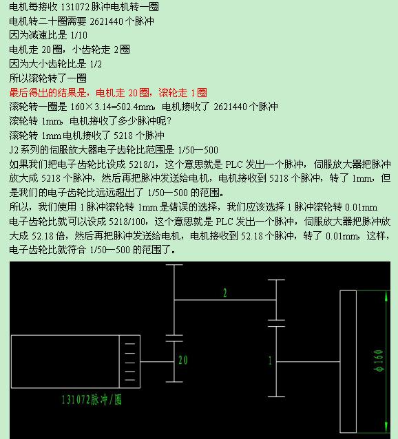這樣設(shè)定伺服電機很容易抖動和過速。建議用一個脈沖當(dāng)量0.01mm