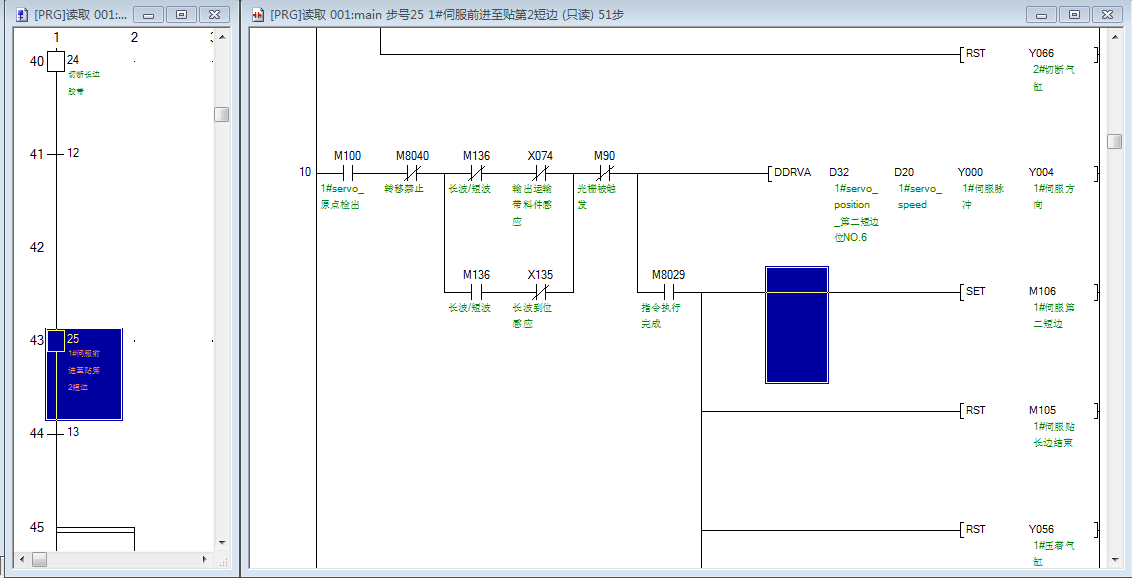 好吧既然大家討論的很熱情,且都說有問題,那我就描述下程序的細(xì)節(jié),這程序中用到兩個(gè)伺服一個(gè)步進(jìn)且互相獨(dú)立運(yùn)作,也就是說有可能三個(gè)脈沖指令在某一時(shí)刻都在運(yùn)行,而M8029卻是共用的,如果不添加M8340 M8350 M8360的話會導(dǎo)致相互干擾,當(dāng)然伺服驅(qū)動(dòng)有脈沖結(jié)束的反饋信號,但步進(jìn)驅(qū)動(dòng)沒有。大伙兒有更好的辦法不妨說說,探討探討,程序也可改進(jìn)改進(jìn)。