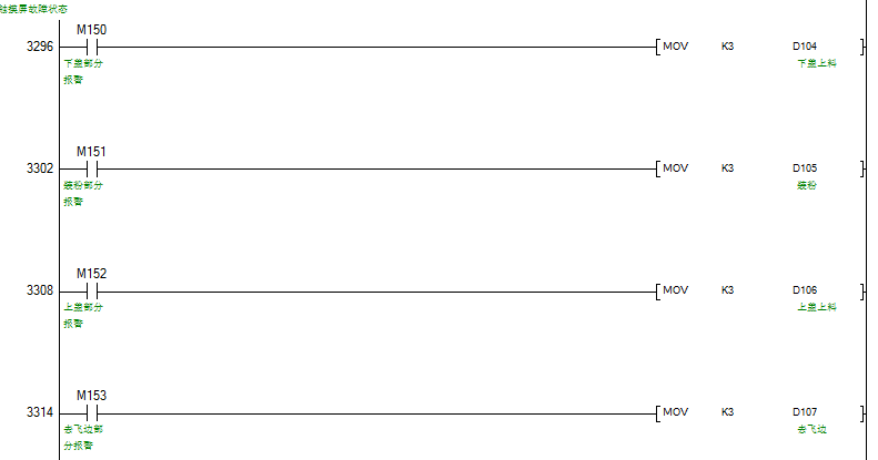 圖2前面的輸入按照樓上的方法,輸出改為 fmov k3 d104 k4 試一下 樓主留言:如果是這樣的話,其中一個M繼電器動作了,其他的都被傳送了 |