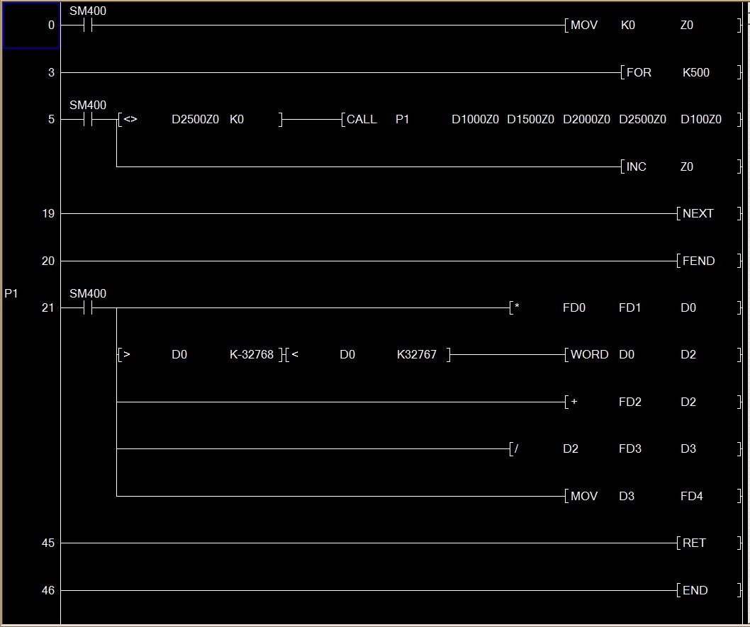 我現(xiàn)在有一組數(shù)據(jù),都需要經(jīng)過各種加減乘除,大概5-6次的數(shù)據(jù)計算,比如D1000到D1500,這500個,要是都一個個寫指令太費(fèi)力了,大神們有沒有什么好辦法? |