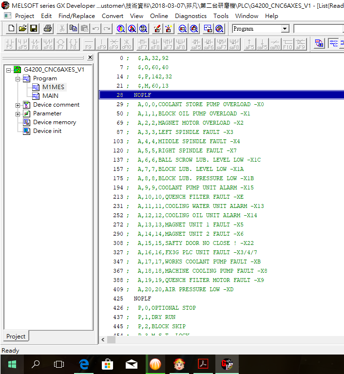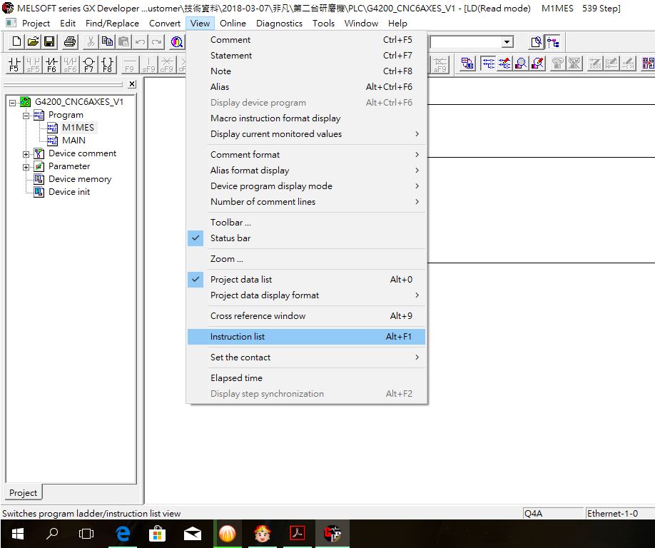 引用引用第2樓kenneth于2018-07-19 13:40發(fā)表的 :Dear langui,抱歉, 我的開(kāi)發(fā)系統(tǒng)是英文, 但你慢慢研究應(yīng)該會(huì)知道如何設(shè)定.你看圖左邊有M1MES的檔案, 先將它點(diǎn)選出來(lái), 然後在Menu 的View選項(xiàng)內(nèi)要勾選Instruction List, 之後再去撰寫(xiě)你的Alarm Message.
