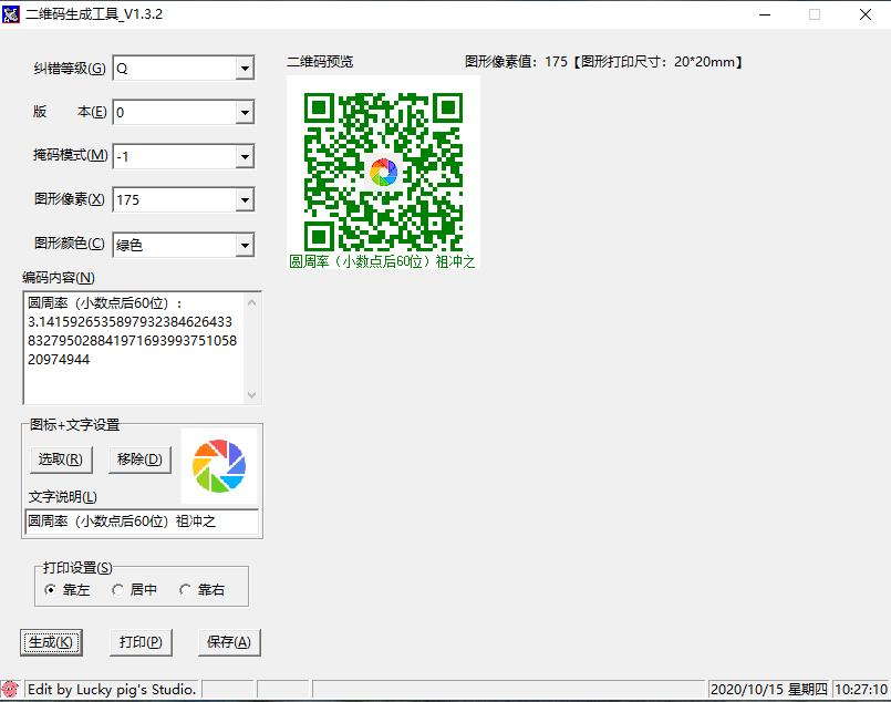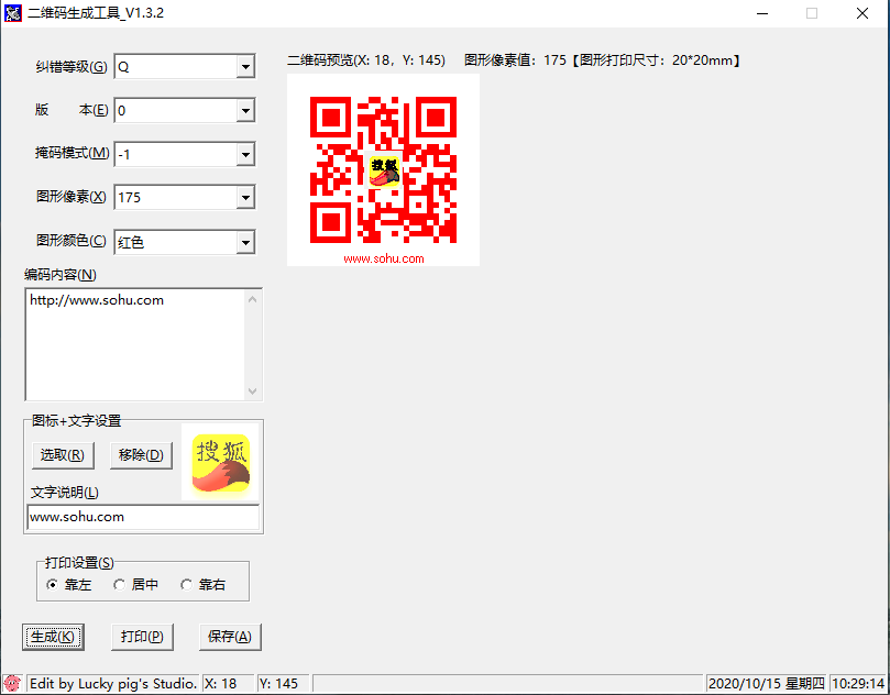 4、 這一版本實現(xiàn)了目前二維碼生成工具的所有基本功能,至于各種形狀的圖形那就看個人的愛好了。