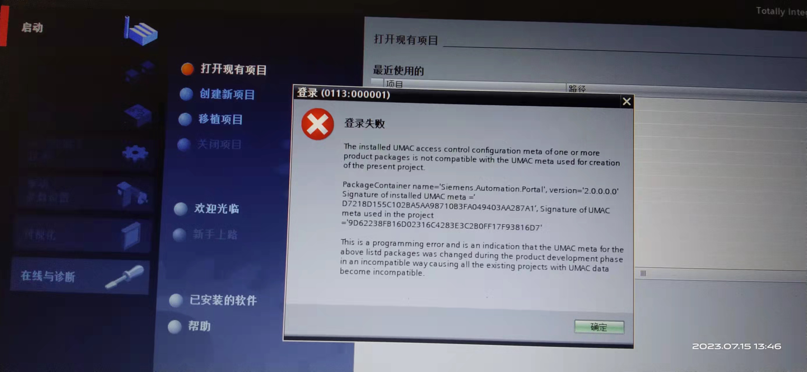 遇到個(gè)問題請(qǐng)教一下老鐵們,軟件版本與程序版本一致的,不知什么原因引起彈出這個(gè)對(duì)話框出來,程序無法打開。