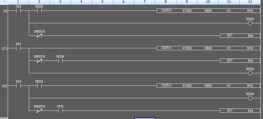 我明白大大意思,我是用STL步進(jìn)點(diǎn)S寫程式S43是常ON要等條件成立後離開就會(huì)OFF,距離任意設(shè)定所以用DDRVI,就怕一個(gè)掃秒周期的問題,如果DDRVA有條件離開就沒這問題,謝謝大大回答