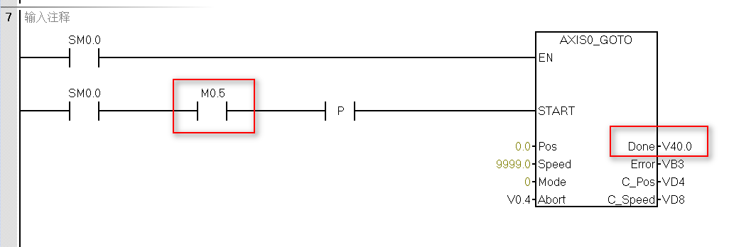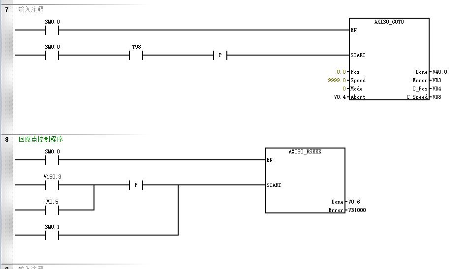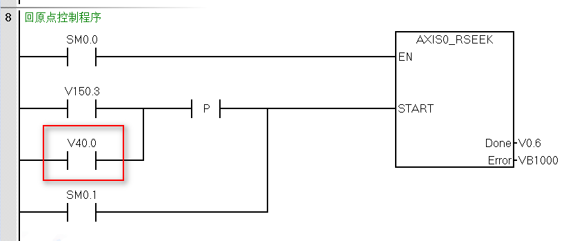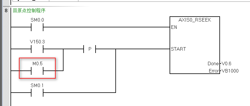 也就是用最后一次定位網(wǎng)絡(luò)7的定位完成V40.0,代替網(wǎng)絡(luò)8的M0.5, 這樣網(wǎng)絡(luò)7定位完成后, 才執(zhí)行網(wǎng)絡(luò)8回原.
