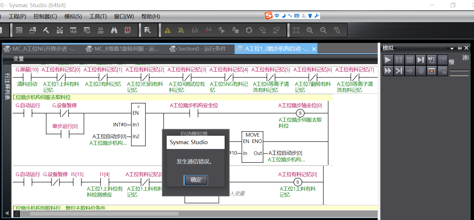 歐姆龍CJ系列PLC模擬仿真失敗是什么原因?幫忙指導(dǎo)下