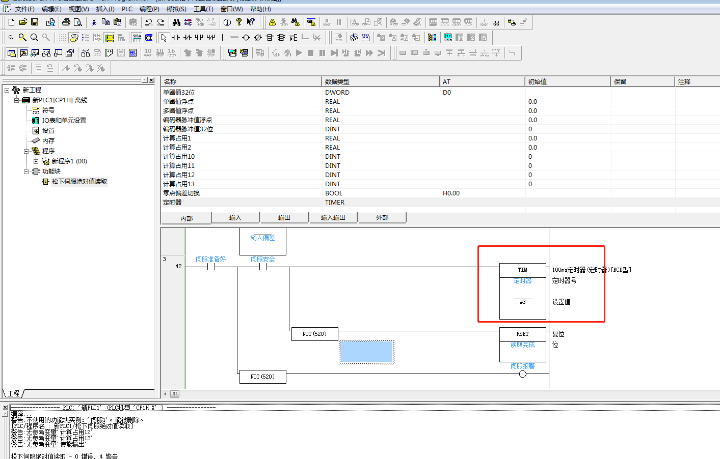 CP1H有時候出現(xiàn)很多奇奇怪的,都無法編譯,比如功能塊里面不能直接使用D0,非要轉成自定義的變亮,還有這個定時器也是非要16進制的