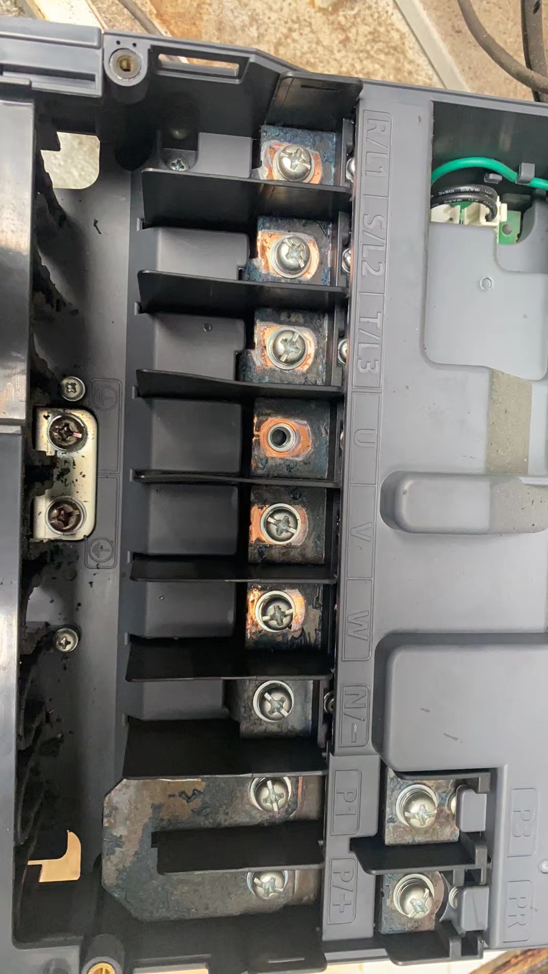 看接線端子的情況,現(xiàn)場(chǎng)應(yīng)該有腐蝕性氣或霧,這樣的話電路板上的三防漆容易起皮,霧氣嚴(yán)重的話還容易導(dǎo)致結(jié)露,容易炸DB板主回路。