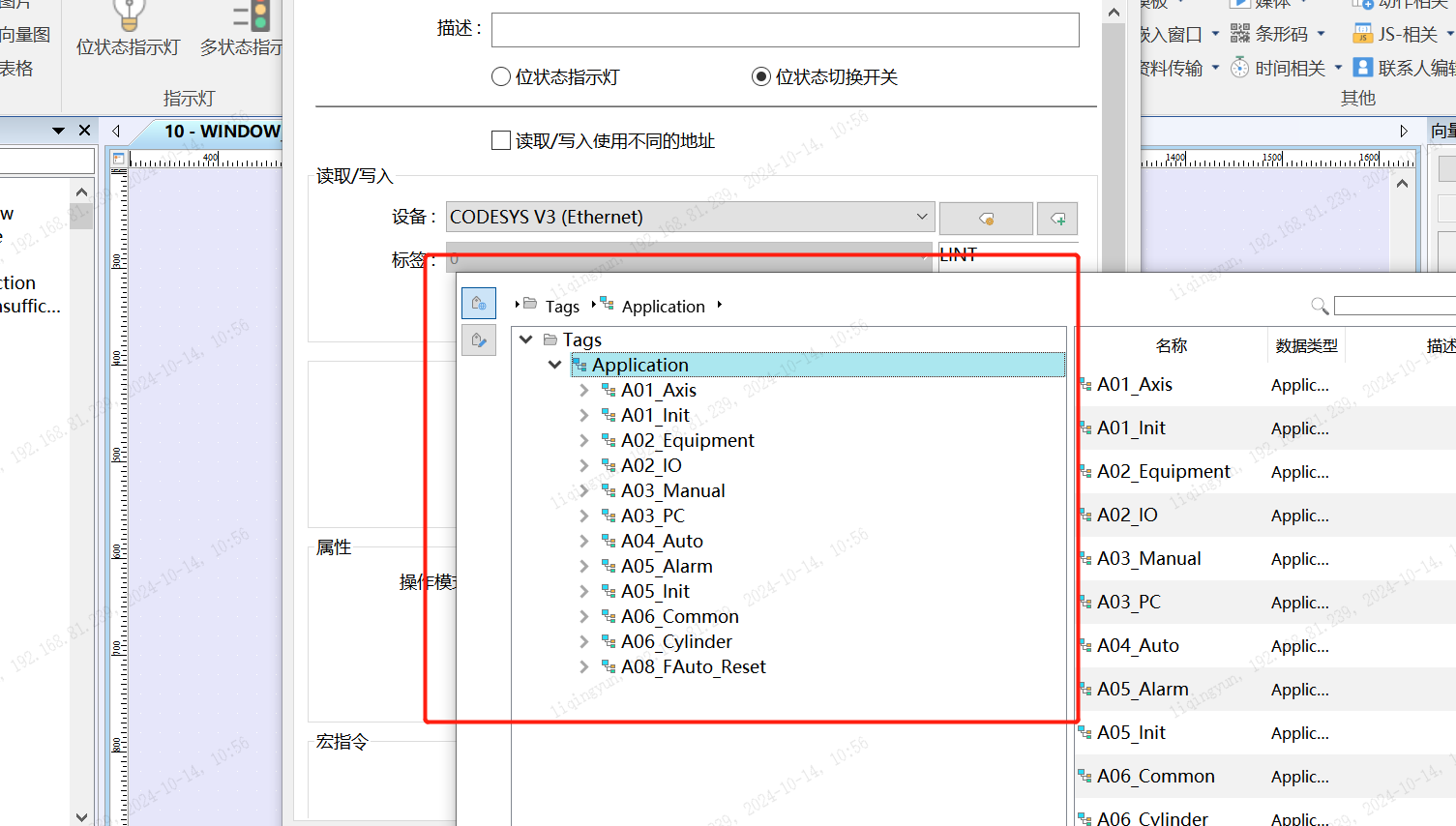 引用引用第2樓卓發(fā)智能于2024-10-14 13:42發(fā)表的 :是這樣的,你在編輯按鈕或者輸入框時(shí),因?yàn)楦髯缘臄?shù)據(jù)類型不一樣,所以顯示出來的標(biāo)簽地址自然是有多有少啊,比如你輸入框里面選擇地址時(shí),顯示出來的都是數(shù)據(jù)類型的變量名,INT DINT 浮點(diǎn)等,,按鈕就會(huì)顯示位或者BOOL類型的數(shù)據(jù)。