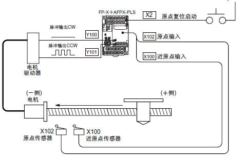 你沒有設(shè)置X4為原點(diǎn),方法:選項(xiàng)\PLC系統(tǒng)寄存器設(shè)置\主單元輸入設(shè)置2,將X4設(shè)為脈沖輸出CH0的原點(diǎn)輸入,就OK了。 |