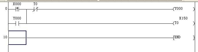 1、按X000,Y000點(diǎn)亮,延時5秒鐘后Y001點(diǎn)亮, Y000熄滅。