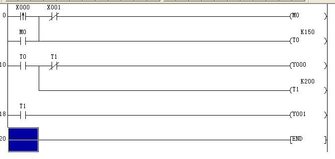 1、按X001,Y001延時5秒鐘后點(diǎn)亮,再延時5秒鐘后Y002也點(diǎn)亮。
