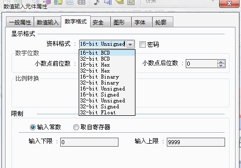 現(xiàn)在我有個(gè)歐姆龍的PLC,想用維綸的“數(shù)值輸入”按鈕,來(lái)修改歐姆龍DM17的數(shù)據(jù),但是我不知道“數(shù)字格式”里改選什么呢?請(qǐng)大家指教一下,謝謝