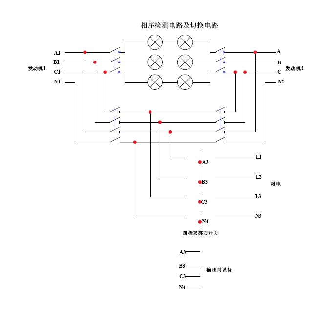 1樓正解,但是要注意相序 電壓 頻率,最好自己做一個完整的切換電路,可單機 可并網(wǎng)。如果沒有相序檢測儀器。就用6個電壓220V 40W的普通照明燈泡代替。具體做法是見圖(開關(guān)合上后燈泡不亮表示相序正確)如果樓主及各位同仁覺得可以請頂并加分。
